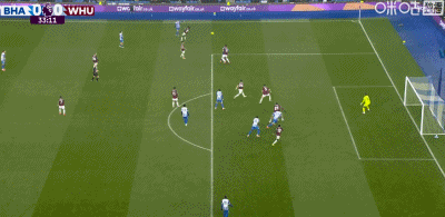 第33分钟,布莱顿左路传中制造威胁,魏费尔门前蹭射偏出