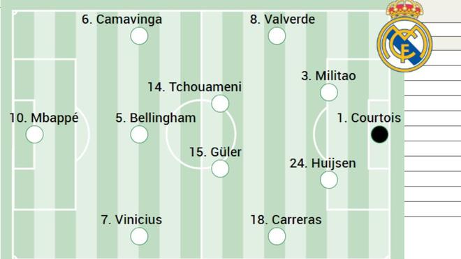 中场:居莱尔、楚阿梅尼、贝林厄姆